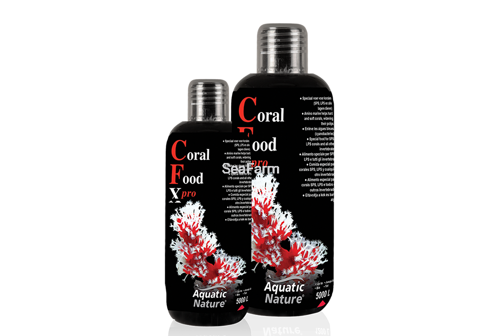 Aquatic Nature Coral Food X-Pro to najwyższej jakości pokarm w formie zawiesiny, dla wszystkich rodzajów koralowców, a także dla bezkręgowców i filtratorów. Specjalnie dobrane najwyższej jakości składniki, pokrywają w pełni zapotrzebowanie na składniki odżywcze. Regularne stosowanie powoduje wyraźne przyspieszenie tempa wzrostu, wypolipowanie, wybarwienie, a także "puchnięcie" koralowców.