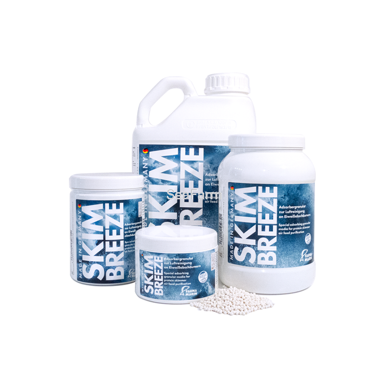 Fauna Marin Skim Breeze jest specjalnym adsorbującym granulatem stosowanym do oczyszczania powietrza wciąganego przez odpieniacz białek.