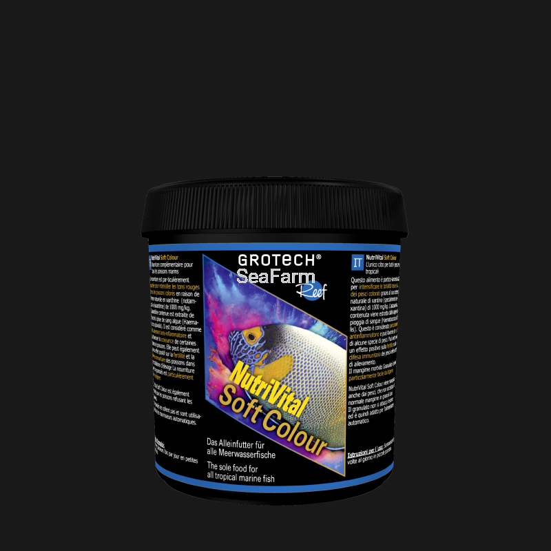 GROTECH NutriVital Soft Colour 0,6–0,9 mm to miękki, łatwo przyswajalny granulat, stworzony z myślą o podkreślaniu czerwonych i niebieskich tonów u ryb akwariowych. Dzięki naturalnym ksantofilom, w tym zeaksantynie (1000 mg/kg), oraz astaksantynie z alg Haematococcus pluvialis, pokarm wspiera antyoksydacyjne procesy, odporność i prawidłowy wzrost ryb, a także może pozytywnie wpływać na płodność i odporność w hodowlach.