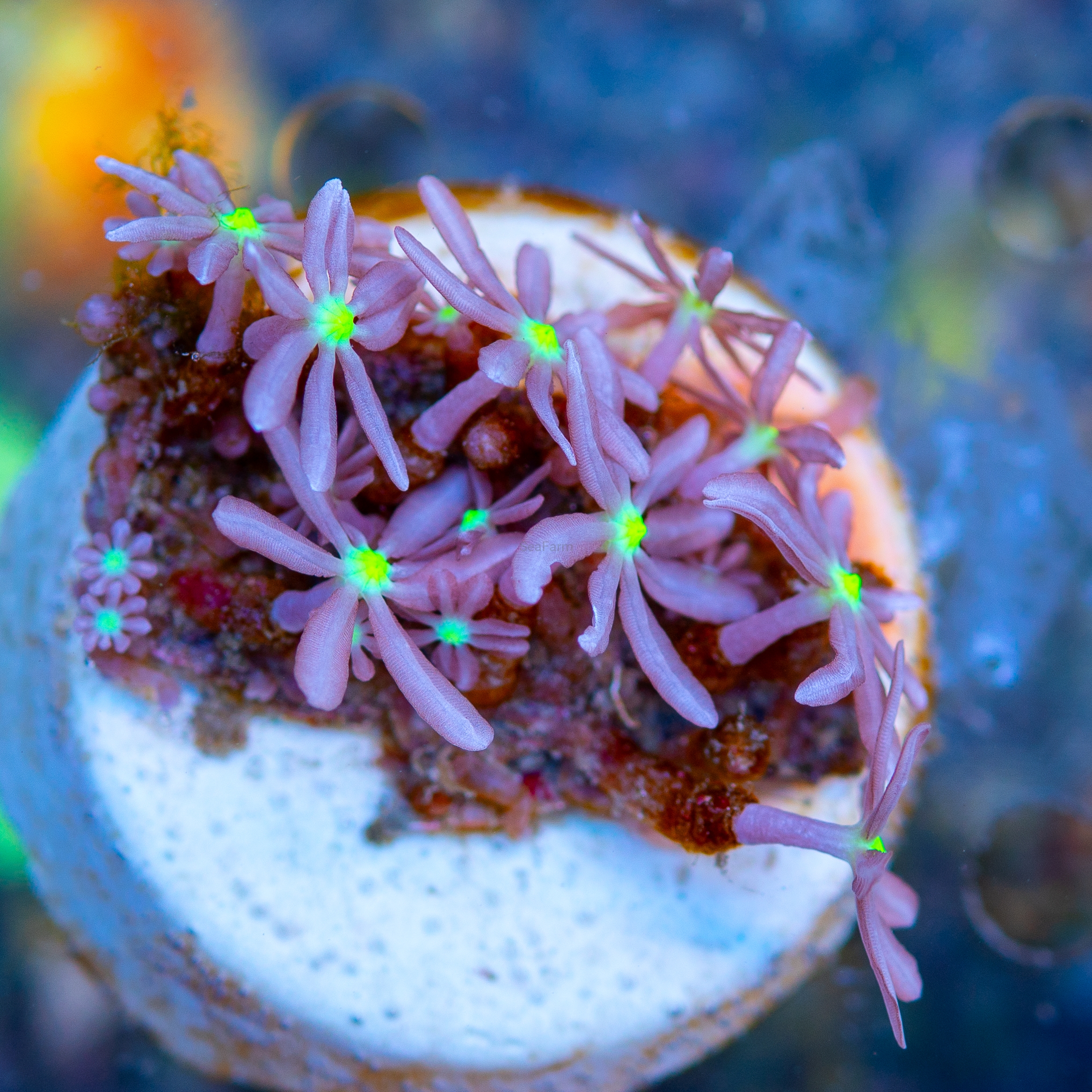 Knopia octocontacanalis to subtelny i niezwykle urokliwy koralowiec miękki, który często bywa mylony z koralowcami typu Clavularia lub Jasmine Polyps. Tworzy on delikatne, gwieździste polipy o ażurowej strukturze, które gęsto porastają skałę, tworząc efekt żywego, falującego dywanu. Jest to idealny wybór dla akwarystów szukających koralowców o drobnej, detalicznej budowie.